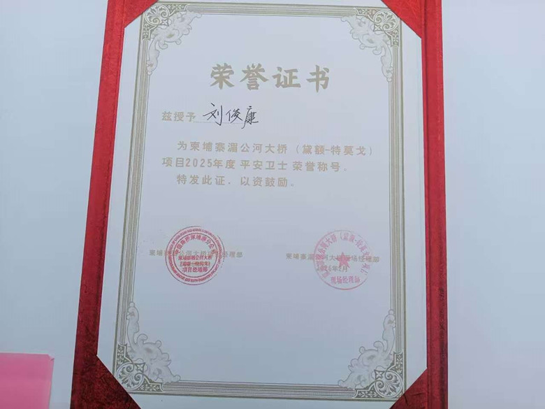 基礎(chǔ)公司柬埔寨湄公河大橋項目榮獲甲方好評 員工劉俊康獲評“安全衛(wèi)士”